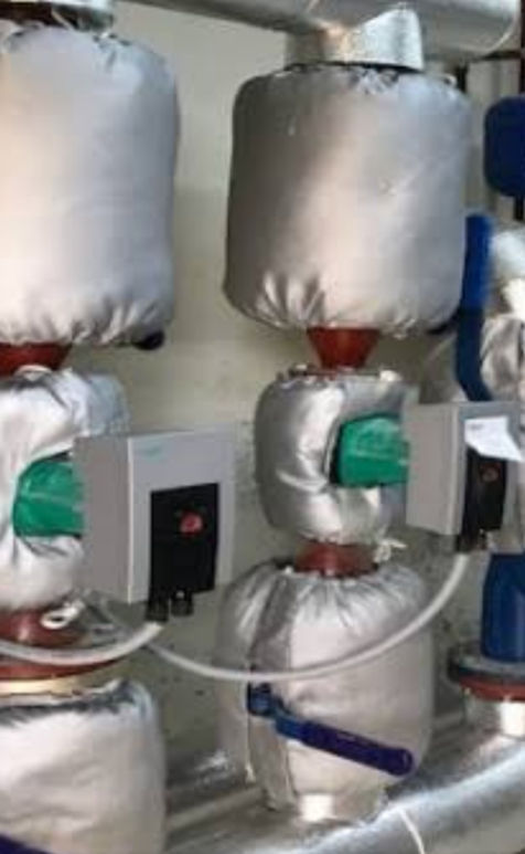 Vana ve armatürlerde, (vana,pislik tutucu, çekvalf, kompansatör, eşanjör, su tankı vb.) enerji kaybını en aza indirmek ve enerji verimliliğini sağlamak maksadıyla kullanılır. Vana ceketleri, Cam elyafından yapılmış ve dış yüzü Silikon, Poliüretan, Alüminyum